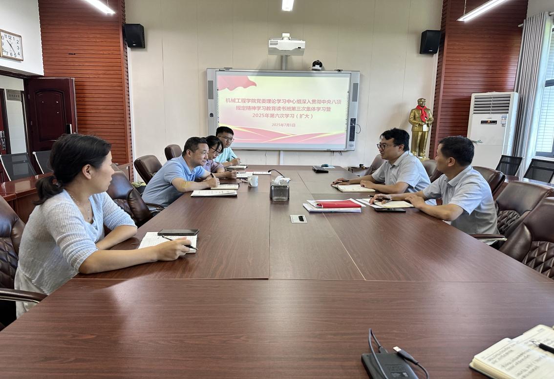7月1日下午,beat365英国官方网站深入贯彻中央八项规定精神学习教育读书班第三次集体学习暨2025年院党委理论学习中心组第六次(扩大)学习在机械楼311会议室举行。院党委书记黄先威主持学习。党委理论学习中心组成员、各支部书记参加学习。