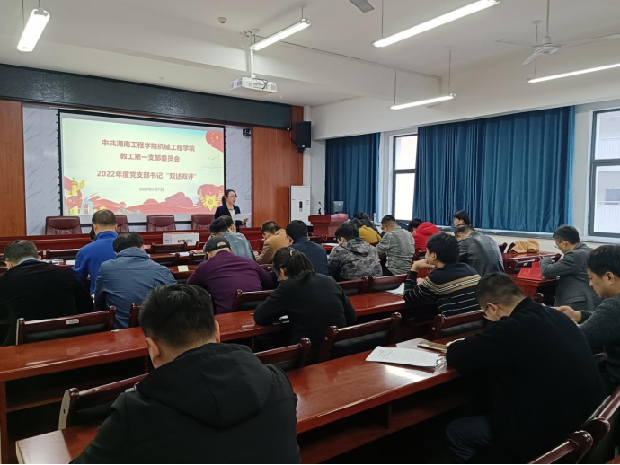 2023年3月7日下午,beat365英国官方网站教工一支部全体党员在机械楼312会议室进行了2022年度党支部书记“双述双评”工作,召开了组织生活会并对党员进行民主评议。会议由支部书记程玉兰主持。