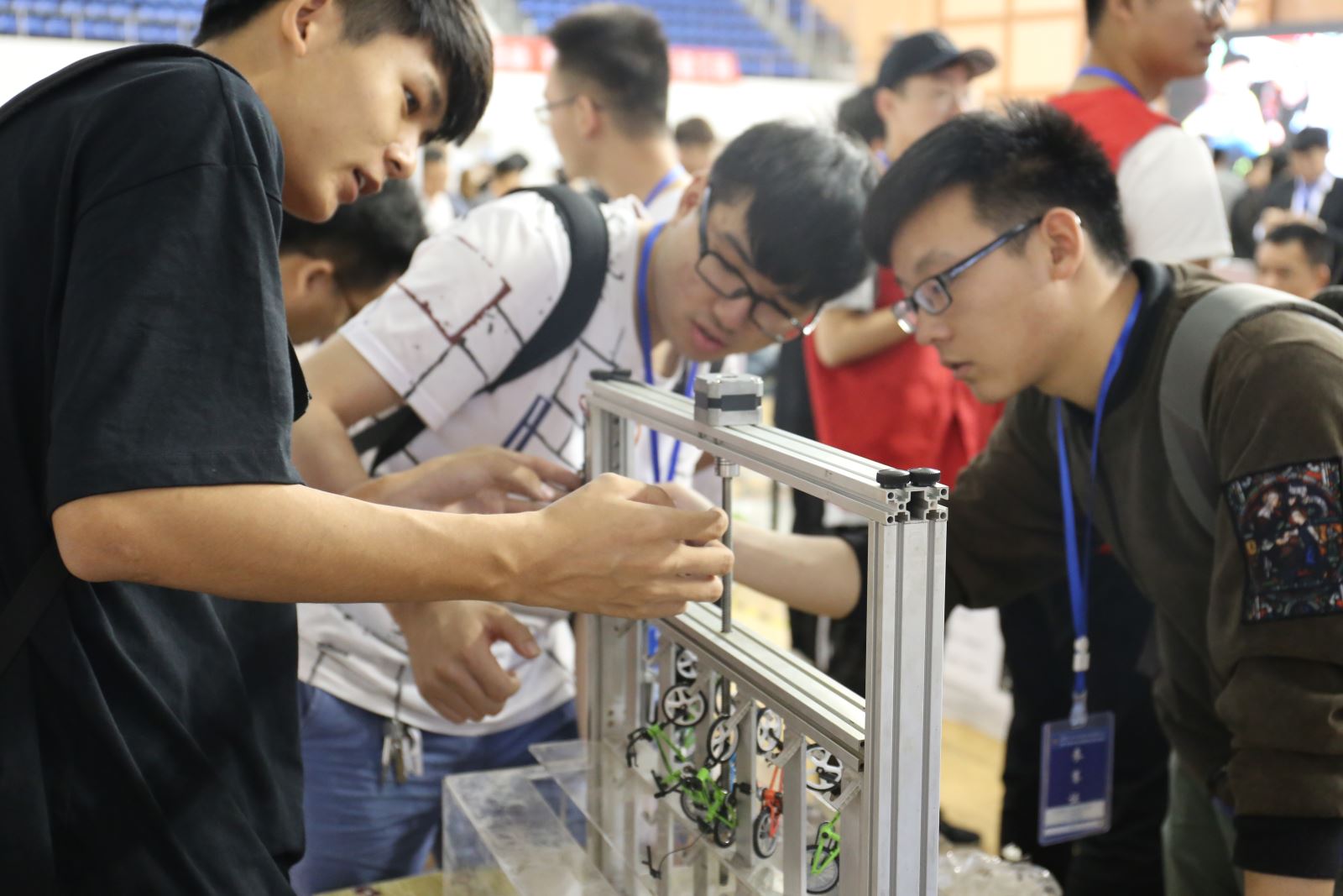 本次赛事以“关注民生、美好家园”为主题,旨在关注、解决社会民生的热点和难点问题,以“小型停车机械装置的设计与制作、辅助人工采摘水果的小型机械装置或工具的设计与制作”为内容,选手们制作了精美的作品,进行精彩的展示。摩天轮停车装置、便携式水果采摘机等都体现出了同学们的创新设计意识与综合设计能力。一件件构思巧妙的作品赢得了评委与观众的一致好评,评委对每一件作品也都给予了中肯的评价与建议,现场氛围紧张而热烈。