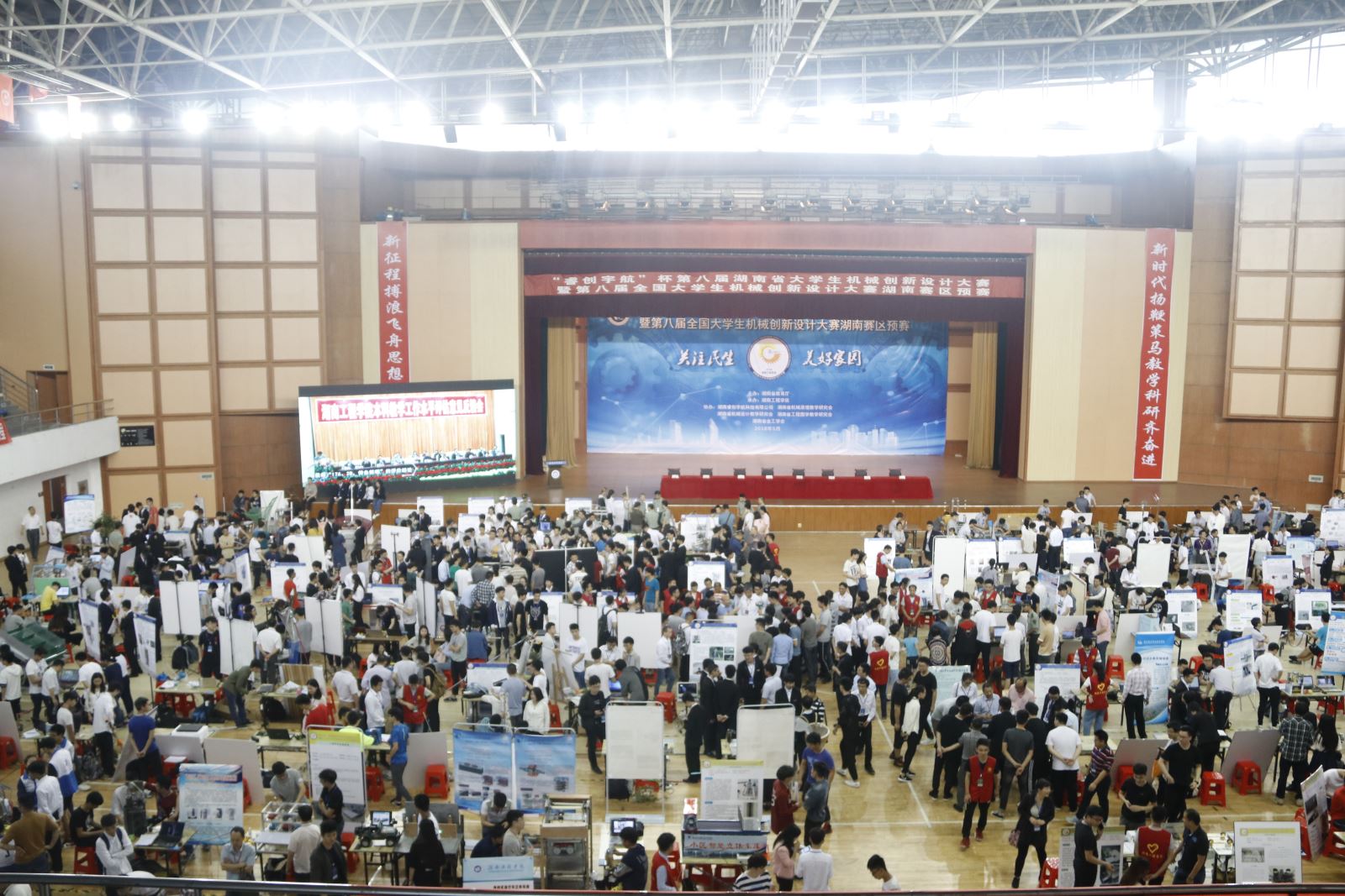 5月11-13日,第八届湖南省大学生机械创新设计大赛在beat365官网举行。来自国防科技大学、中南大学、湖南大学等33所高校的243件作品、1000余名参赛师生同台竞技,参赛高校、参赛作品数及人数创历届大赛之最。