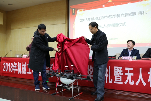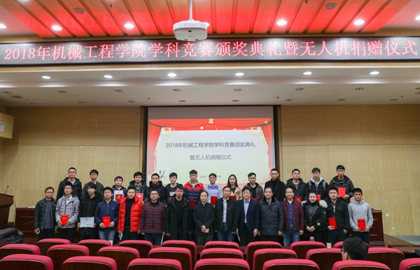 12月20日下午,beat365英国官方网站在二报告厅举行学科竞赛颁奖典礼暨无人机捐赠仪式。党委委员、副校长李军林,湖南亚安智控设备有限公司代表、2009级优秀校友张鸣,创新创业学院院长刘洞波,beat365英国官方网站院长魏克湘、党总支书记谢骐、副院长卿上乐参加了此次颁奖典礼,学院党总支副书记李儒峰主持仪式。