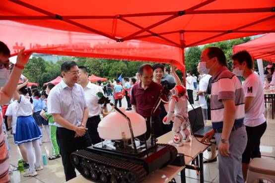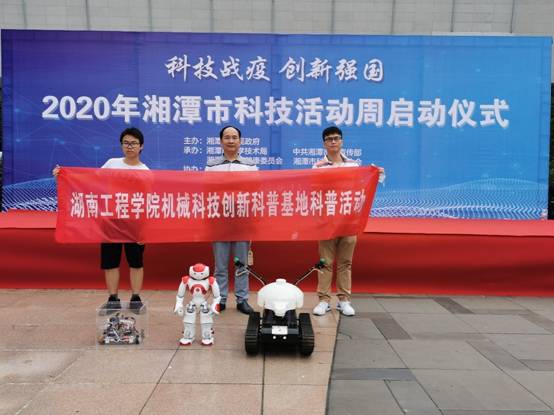 此次活动中,beat365官网学生科技创新实验室师生携带了三种机器人赴现场进行科普活动,展示科技创新成就和科技战疫成效,弘扬科学精神,普及科学知识,推动科技创新成果惠及于民,受到现场群众的广泛关注,湘潭市人民政府副市长傅军等领导也到展位前进行询问和了解科普内容。