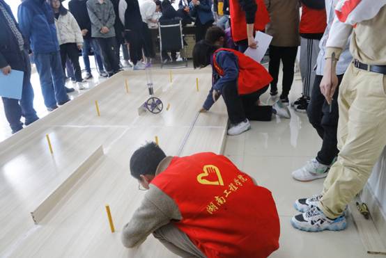 此次比赛涵盖势能驱动车、热能驱动车、智能机器人物流搬运、桥梁结构设计、生活垃圾智能分类和智能配送无人机6个赛项,旨在加强学生创新能力和实践能力培养,提升大学生工程创新意识、实践能力和团队协作精神,同时选拨优秀作品参加第六届湖南省大学生工程训练综合能力竞赛。参赛选手们赛前紧张调试,赛场稳定发挥,设计制造的作品获得专家评委们的肯定。