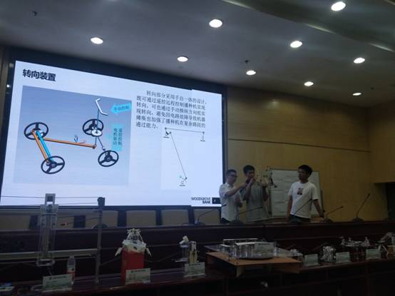 随后,参赛的16支队伍代表依次上场,就参赛作品的设计背景、工作原理、创新之处等内容进行了汇报,并进行了作品操作展示。大赛的指导老师分别对每个作品进行了精彩点评。通过激烈角逐,“多功能一体化自动播种机”、“0号擦黑板装置”等五个作品凭借精彩表现获得一等奖,“仿生机器人”等五个作品荣获二等奖。
