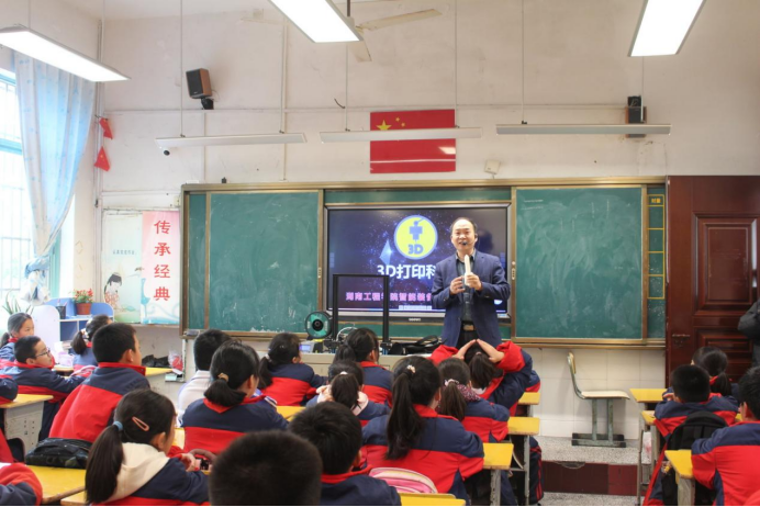 “大家找一找那些是3D打印的作品?”“思考一下,这么复杂的作品是如何通过3D打印出来的呢?”“你们认为普通打印机与3D打印机有哪些区别呢?”在智能装备科普基地负责人王高升老师一个个问题的设置和解答中,小学生们了解了3D打印技术的概念、原理、材料、应用以及未来发展趋势,更让他们近距离观察到3D打印设备的工作形态,启蒙了同学们的创新意识和实践能力,充分感受到了科技的魅力。