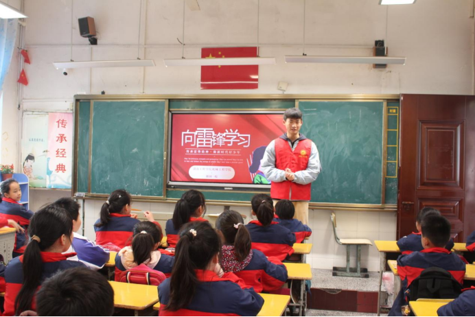 活动中,学生党员段星亚同志作了“向雷锋学习”主题宣讲,回顾雷锋同志生前感人事迹,通过解读雷锋日记,重温雷锋走过的足迹。在知识竞赛环节,同学们争先恐后举手作答,现场气氛十分活跃。活动最后,学生党员志愿者们为每一位同学准备了雷锋印花纪念本和精美文具,一张张童稚的脸上写满了希望和未来。