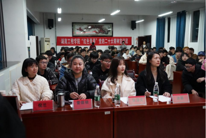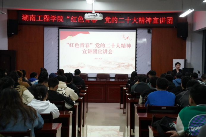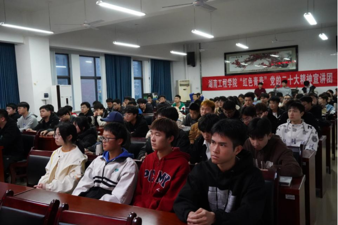 为深入学习宣传贯彻党的二十大精神,引导广大青年学子紧跟党的先进思想步伐,4月6日晚,湖南工程学院“红色青春”党的二十大精神宣讲团开展了校内第二次专题宣讲。本次宣讲由湖南工程学院校团委主办,beat365英国官方网站团总支承办。校团委和beat365英国官方网站老师出席宣讲会。