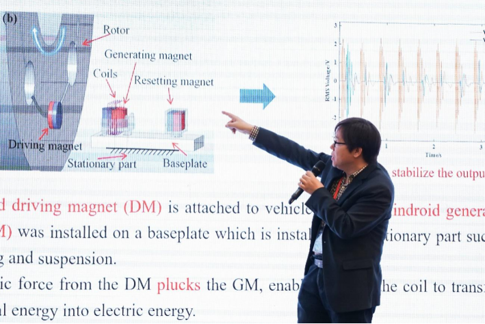 会议主题报告环节,围绕“振动”和“能量俘获”两个关键词,密西根大学、安娜堡分校教授左磊,香港理工大学教授严晋跃、英国南安普顿大学副教授Daniil Yurchenko、西北工业大学航空学院教授周生喜、哈尔滨工业大学(深圳)教授陈立群、法国里昂国立应用科学学院教授Mickaël LALLART、加拿大工程院院士、香港理工大学机械工程系首席教授成利、东京大学教授Kimihiko Nakano、英国巴斯大学教授Chris Bowen分别以《Biomechanical energy harvesting for wearables and portables》《Trends and Needs of Future Energy R&D》《Future of high-performance energy harvesters through global devices optimization》《Nonlinear vibration energy harvesters subjected to various excitations》《Integration of vibration reduction and energy harvesting for a satellite with an adapter》《Nonlinear conditioning circuits for piezoelectric energy harvesters: from principles to applications》《Vibration energy manipulation through nonlinear electromechanical coupling-enhanced acoustic black hole effects》《Self-powered Active Suspension and Energy》为题做学术报告。
