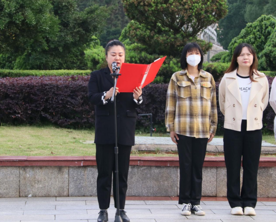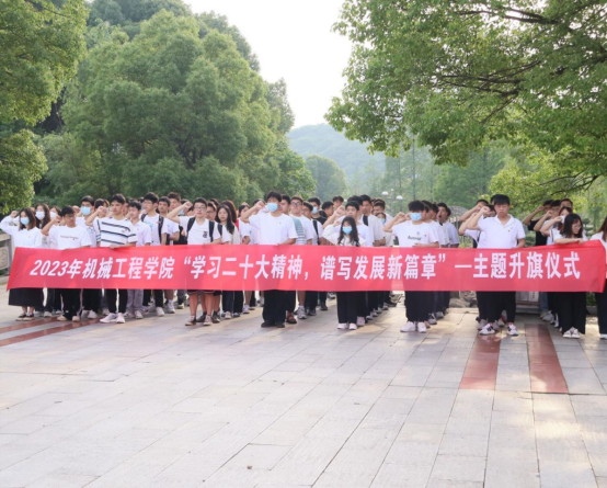 为推动学习贯彻习近平新时代中国特色社会主义思想主题教育走深走实,牢牢把握“学思想,强党性,重实践,建新功”的总要求,激励beat365英国官方网站全体师生,以焕然一新的面貌、昂扬奋进的姿态开启新征程、做出新成就,5月15日清晨,beat365英国官方网站在主校区知行广场举行以“学习党的二十大精神,谱写发展新篇章”为主题的升旗仪式。学院学办主任曾依依、全体辅导员、学生党员、学生干部及2022级新生参加。仪式由党务专干刘珈黎主持。
