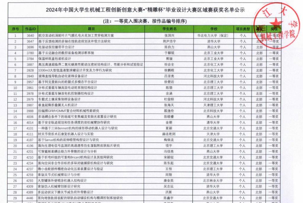 本届“精雕杯”毕业设计大赛是由中国机械工程学会和中国机械行业卓越工程师教育联盟共同主办的具有导向性、示范性的机械类专业毕业设计竞赛活动,为“中国大学生机械工程创新创意大赛”三大赛道之一。本次大赛共收到119所高校提交的1139项作品,最终推荐224项作品参加6月初在浙江大学举办全国总决赛。