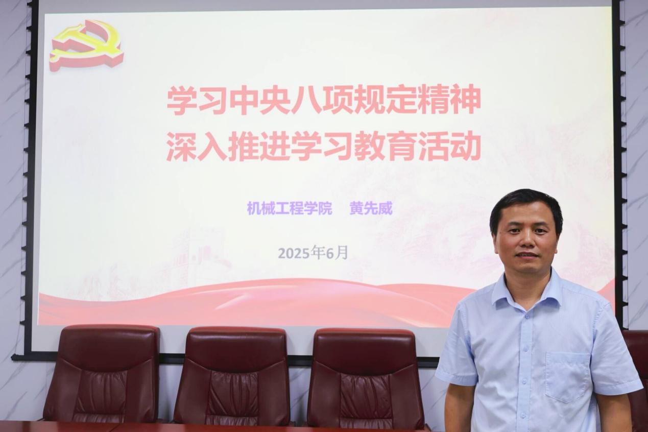为深入学习贯彻中央八项规定精神,扎实推进作风建设,6月24日下午,beat365英国官方网站党委书记黄先威在机械楼312会议室为全院教职工党员讲授专题党课。