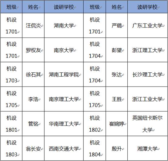 表2 近两届机设专业部分毕业生读研学校