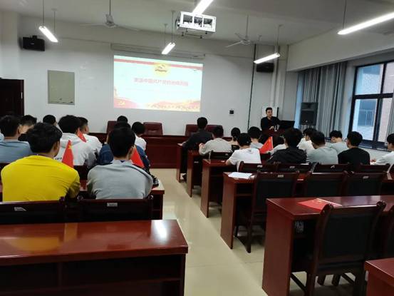 为使学员能够更好的了解党学习党的精神,张阳演以时间为轴带领同学们回望中国共产党的成长历史。他从中国人民斗争的主心骨的诞生和中国共产党不懈奋斗两方面阐述党的艰苦卓绝的奋斗历程。首先,他通过对建党初期青年的毛泽东、陈独秀、李大钊等胸怀救国救民的年轻人为实现中华民族伟大复兴的历史使命,建立中国共产党团结并带领中国人民不断革命取得革命胜利,实现民族独立和人民解放。将同学们带往了那个战火纷飞、人人自危的时代,带入了在那个年代下仍愿为祖国、为人民,“寄意寒星荃不察,我以我血荐轩辕”的革命先烈们,以他们的身份完成重建家园、复兴祖国的丰功伟绩;其次,他讲到当今新中国为实现繁荣富强的不断探索,在改革中不断实现自我超越,逐渐从世界的边缘走向了世界的中心,经过百年的发展,中国早已不是往日那个积贫积弱的中国,而是能在谈判桌上对如今世界最强大的国家提出的不合理诉求说“不”的国家。会议最后,他向同学们提出要求,党为国家和人民所做出的卓越贡献永远不能被磨灭,我们要铭记党的奋斗历程,时刻不忘初心;担当党的崇高使命,矢志永远奋斗。