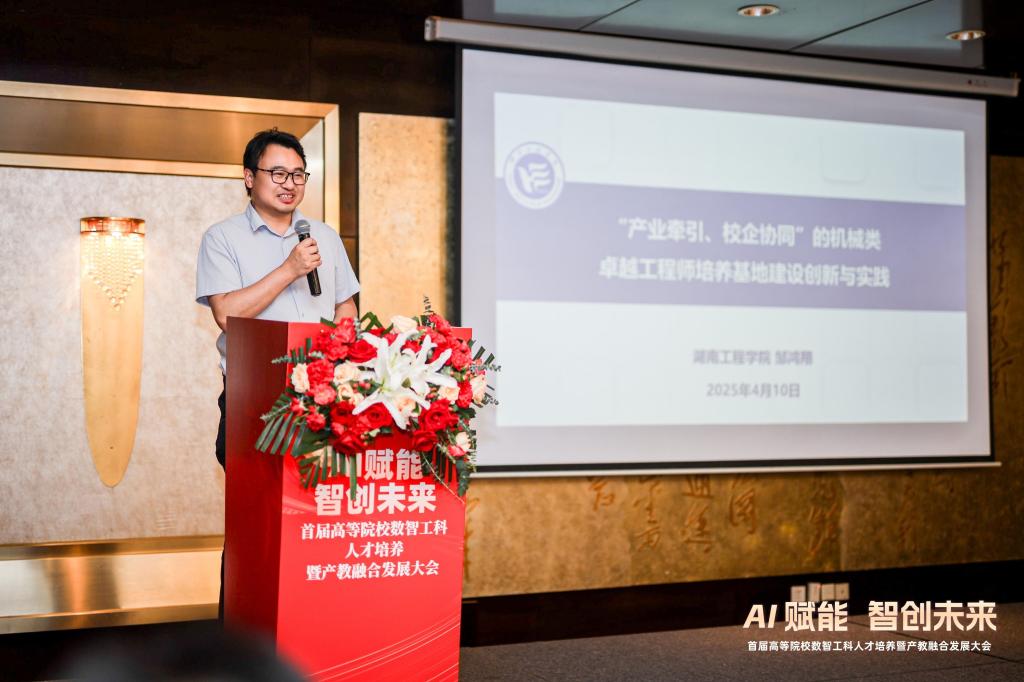 2025年4月10日至12日,由湖南省教育厅、湖南省工业和信息化厅等单位指导,武汉理工大学、长沙理工大学等联合主办的“首届高等院校数智工科人才培养暨产教融合发展大会”在湖南长沙举行。beat365英国官方网站院长邹鸿翔教授受邀参会,并作专题报告。