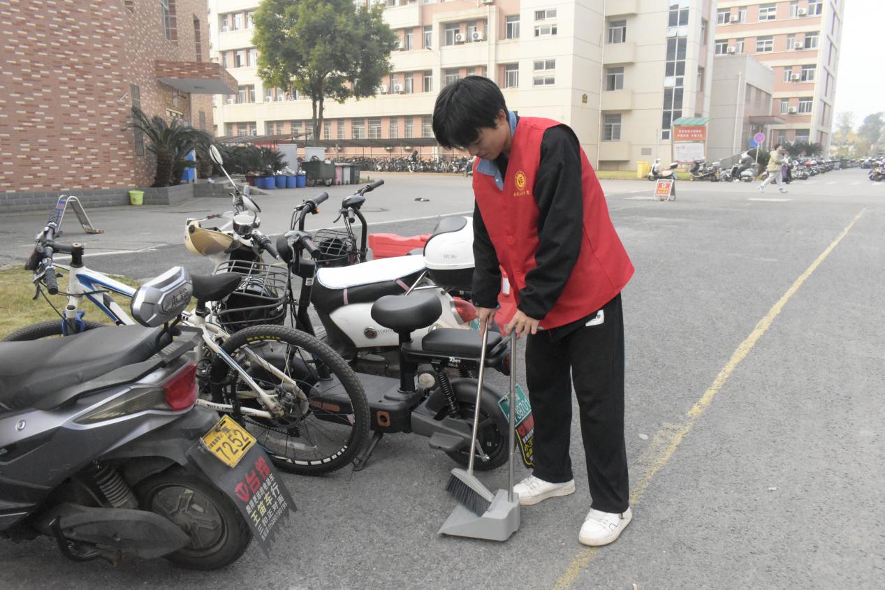 志愿者们分组行动,手持扫帚、簸箕、垃圾袋等工具,奔赴校园各处。根据任务安排各尽其责,认真细致,不遗漏任何卫生死角,重点清理了校园主干道、花坛以及周边区域。志愿者们充分发挥团队协作精神,彼此配合默契,高效推进清洁工作。忙碌的“红色”身影遍布学校各个角落,在志愿者的共同努力下,整个校园焕发出更加蓬勃的朝气与活力。